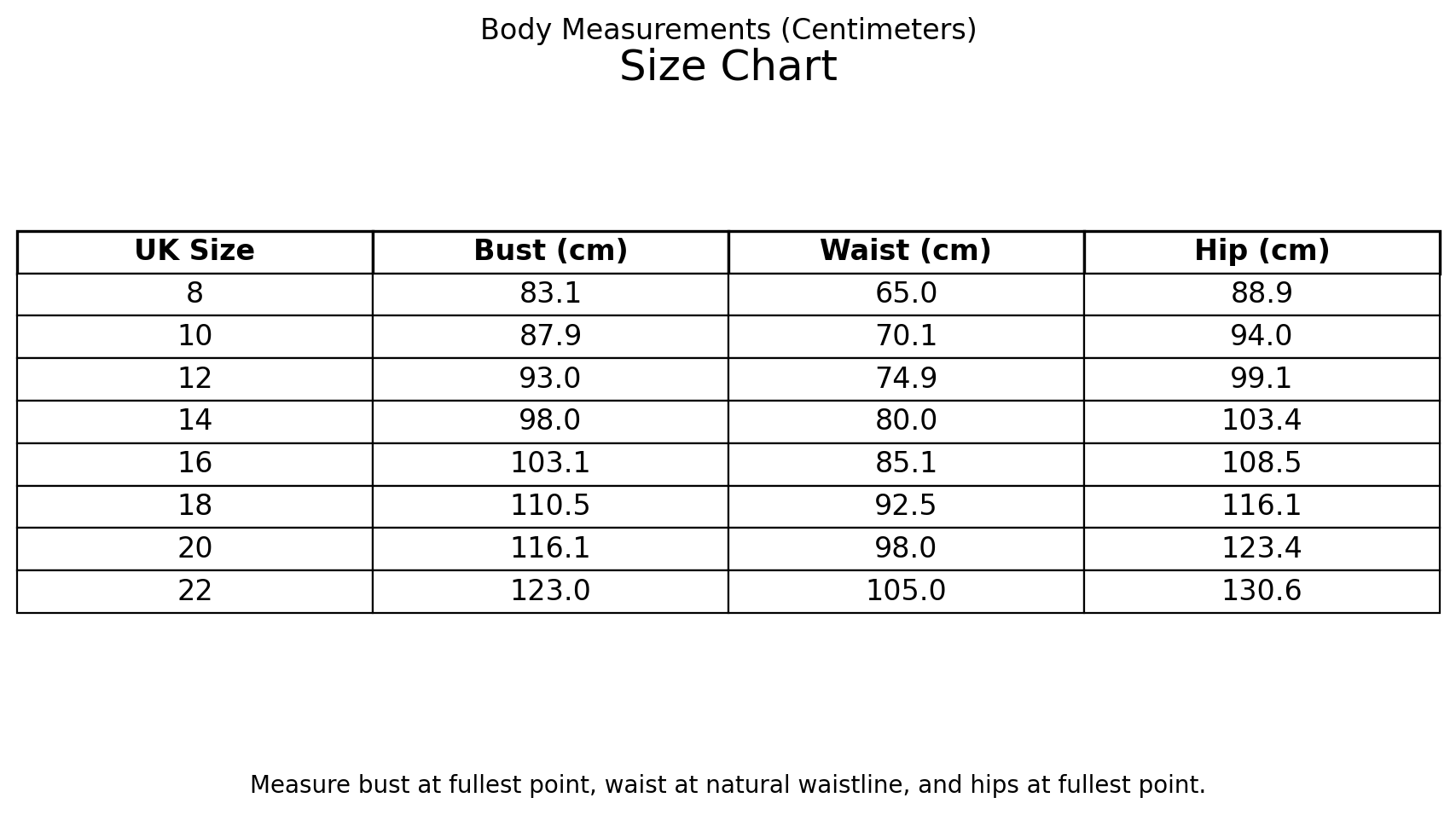 Size chart UK